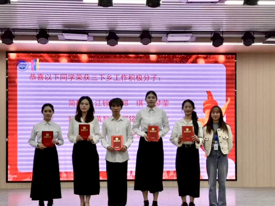 音乐舞蹈学院团总支书记卢晓雯老师为三下乡积极分子颁发荣誉证书