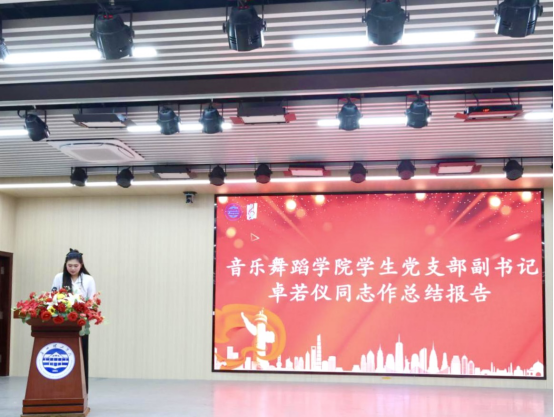 音乐舞蹈学院学生党支部副书记卓若仪同志作总结报告