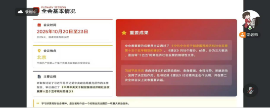 会议围绕全会概况、精神内涵、贯彻落实、全面从严治党等方面开展系统学习,深刻领会全会战略部署,要求将全会精神转化为学院发展与育人工作的具体举措,以全面从严治党保障教育事业发展。党总支副书记全艳对新学期工作提出要求,强调党员教师要发挥先锋模范作用,严守工作规范,提升教学科研质量,全力保障学院评估工作顺利推进,助力学院高质量发展。