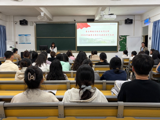 为进一步加强学生党员队伍建设,充分发挥学生党支部的战斗堡垒作用与党员先锋模范作用,2026年3月1日,音乐舞蹈学院学生党支部于广州白云校区6号教学楼开展春季学期学风建设动员大会。本次会议由音乐舞蹈学院学生党支部书记卢晓雯老师主持,音乐舞蹈学院党总支副书记全艳老师、刘国杰老师以及全体辅导员出席,音乐舞蹈学院学生党支部全体成员参加。