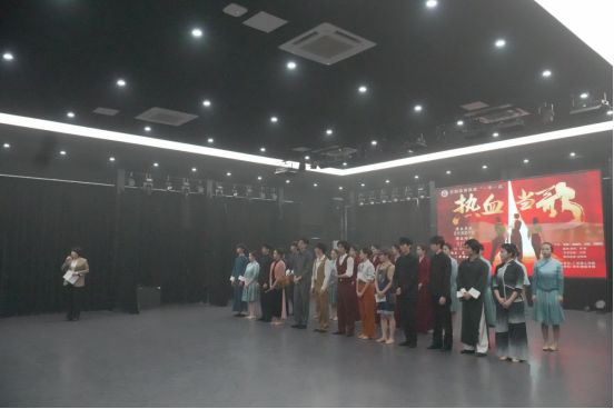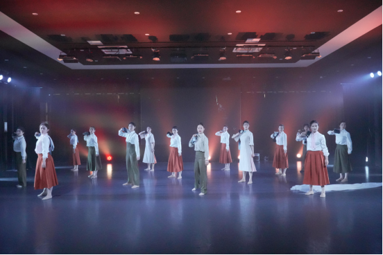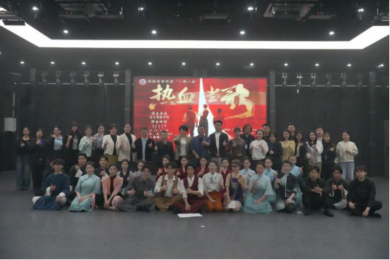 舞剧《热血当歌》以20世纪30年代国家内忧外患、民众深陷苦难的历史背景为依托,聚焦九一八事变、一·二八事变后抗日救亡的时代浪潮,生动讲述了热血青年田汉、聂耳、安娥在风雨飘摇的岁月里,目睹山河破碎、百姓流离,毅然摒弃个人安逸,以笔为刃、以歌为号,投身抗日救亡洪流的动人故事。历经重重挫折与思想淬炼,三人毅然加入中国共产党,始终坚守文艺为人民、为民族的初心,将满腔爱国热忱融入文艺创作,最终谱写出振聋发聩的《义勇军进行曲》,用歌声唤醒民族觉醒,激励无数中华儿女为国家独立、民族解放奋起抗争,成为镌刻在民族记忆里的红色经典。整场演出情节紧凑连贯、情感真挚饱满,师生们凭借扎实过硬的专业功底,将红色精神、家国大义与舞蹈艺术完美融合,每一段舞姿都饱含深情,每一幕场景都直击心灵,深深打动现场每一位观众,赢得全场阵阵热烈掌声,实现了艺术感染力与思政教育力的双重提升,让现场师生在沉浸式艺术体验中接受了一场深刻的红色思政教育。
