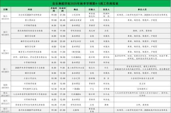 音乐舞蹈学院2025年秋季学期第4-5周工作周程表