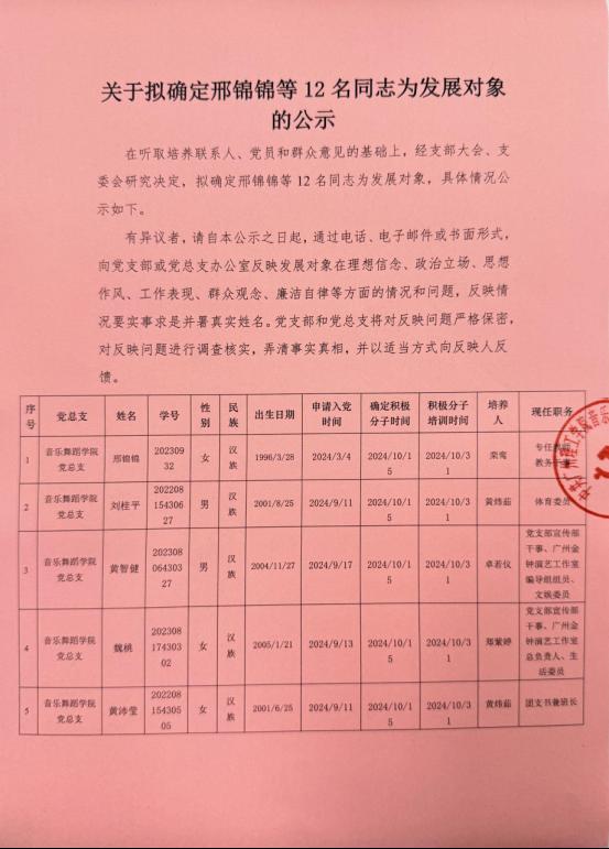 关于拟确定邢锦锦等12名同志为发展对象的公示