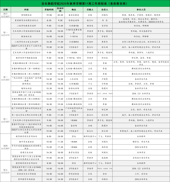 音乐舞蹈学院2025年秋季学期第11周工作周程表(素质教育周)