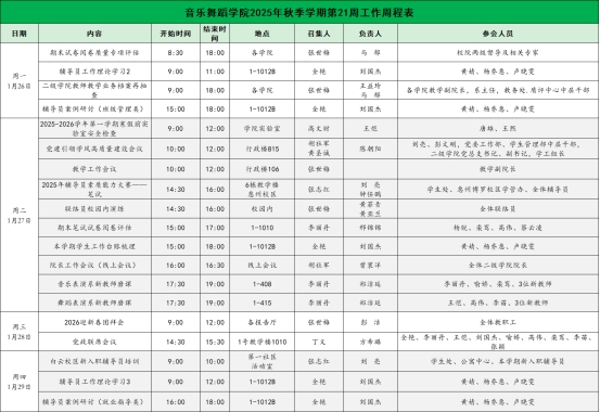音乐舞蹈学院2025年秋季学期第21周工作周程表
