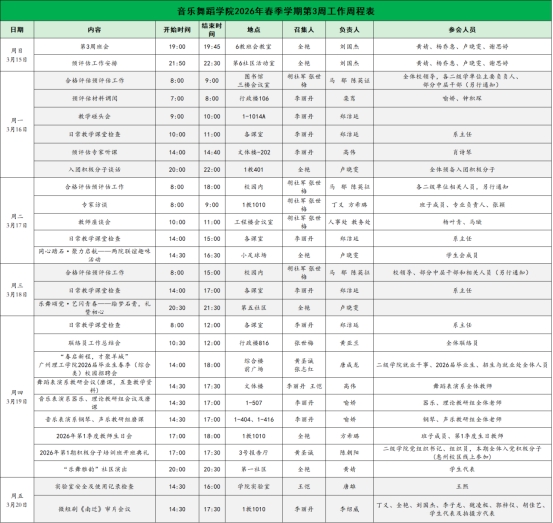 音乐舞蹈学院2026年春季学期第3周工作周程表