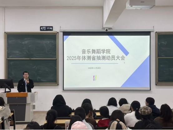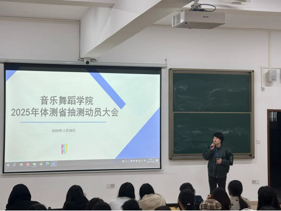 为积极准备广东省2025年学生体质健康抽测工作,展现学院学子精神风貌,11月28日,音乐舞蹈学院于惠州校区一栋教学楼208教室召开2025年学生体质健康抽测工作动员大会。音乐舞蹈学院党总支书记全艳、刘国杰,惠州校区辅导员彭丽苹出席会议,学院25级全体女生参会。