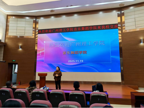 2025年11月19日上午,广州理工学院音乐舞蹈学院副院长李丽丹、王恺,音乐表演系主任钟艺娜、专任教师张宇、优秀学生代表郑铭智一行赴广州科技贸易职业学院艺术设计学院进行交流。