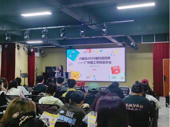12月10日,广州兴趣岛信息科技有限公司在广州理工学院音乐舞蹈学院1教404教室成功举办企业宣讲会。学院党总支副书记刘国杰、辅导员黄婧、卢晓雯,陈菀忻,杨乔惠及百余名学生到场参与。本次宣讲旨在搭建校企沟通桥梁,帮助艺术类专业学生了解行业前沿动态,拓展职业发展路径。