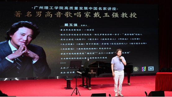 9月18日,广州理工学院工程楼三号报告大厅座无虚席。当日,广州理工学院校长胡社军、音乐舞蹈学院共同邀请著名男高音歌唱家、国家一级演员、郑州大学河南音乐学院院长戴玉强教授,带来“高质量发展中国名家讲座”。音乐舞蹈学院院长丁义、党总支副书记全艳、副院长李丽丹、王恺及师生代表共同到场,在专业分享中感受艺术魅力、明晰学科发展方向。