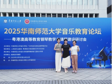 2025年10月9日至10日,“2025华南师范大学音乐教育论坛——粤港澳高等教育钢琴教学与课程建设研讨会”在华南师范大学音乐学院举办。音乐舞蹈学院钢琴教研室主任栾鸾带领刘依雯、唐懿倾、郭梓仪、刘思慧、张宇五位教师参会,深度融入这场聚焦钢琴教育前沿的学术盛会。