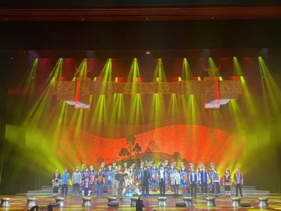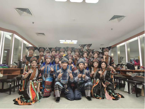 作为该剧第一支持单位,音乐舞蹈学院副院长王恺担任舞蹈总监,李欣、沈薛彬、凌远银、尹婉玲、雷慧宇、刘木岈等26名舞蹈表演专业学生全程参与舞台呈现,以扎实的专业功底、饱满的情感张力展现新时代青年学子的艺术风采。在与行业专家的协同创作中,师生不仅锤炼了舞蹈编排、舞台演绎等专业技能,更积累了高水平音乐剧项目的实战经验。此次实践教学成果的舞台化呈现,有效实现了民族文化传承与艺术教育创新的有机融合。通过深度挖掘少数民族文化基因,师生在动作设计、节奏把控与情感表达中精准传递地域艺术神韵,进一步夯实了“以演促教、产教联动”的人才培养模式。该剧的创演经历为学院探索校地合作路径提供了可复制范本,也为青年学子扎根中国大地、服务乡村振兴注入了精神动力。