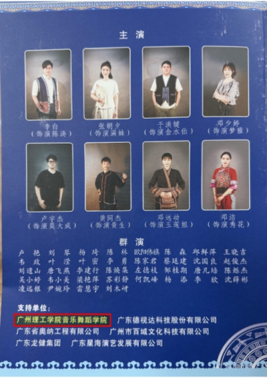 广州理工学院音乐舞蹈学院作为第一支持单位出现在节目单中
