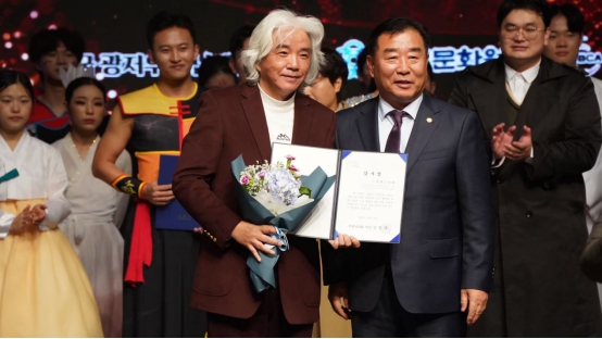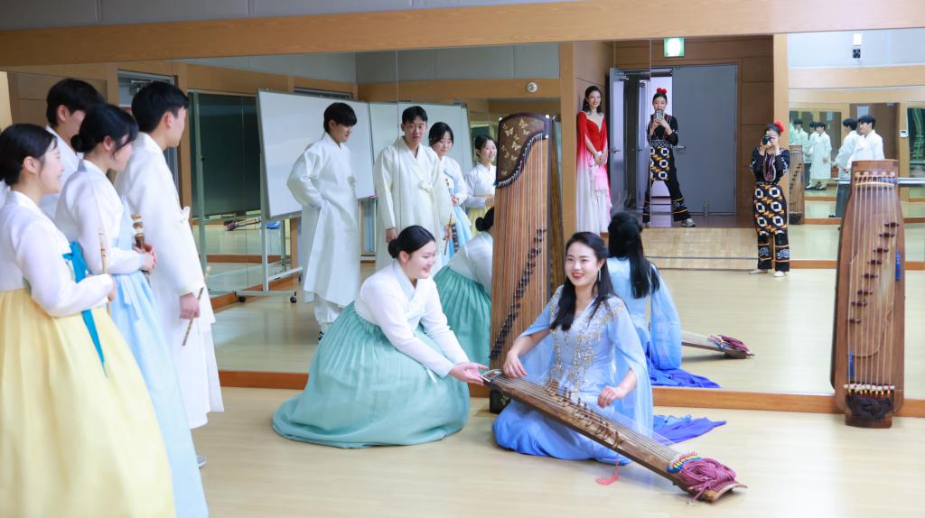 晚会尾声,鸡龙市政府对广州理工学院师生的精彩表现给予高度赞赏,并明确表达了长期合作的殷切期望。鸡龙市议会议长向学校颁发感谢状,鸡龙市市长亲自为丁义院长、王恺副院长颁发功劳表彰状,以此表彰代表团在本次文化交流中作出的突出贡献。活动结束后,喻娇老师携中国传统乐器古筝,与韩国民族乐器演员展开深度文化对话。韩国演员现场展示了伽倻琴、牙筝、觱篥、大岑等特色乐器,两国艺术家即兴弹奏彼此国家的经典曲目,指尖流转间,跨越国界的艺术共鸣让彼此的心贴得更近。