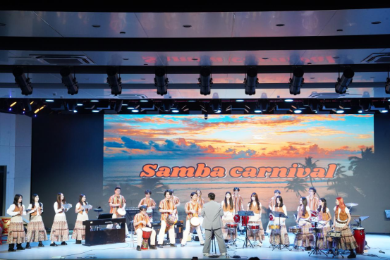 音乐会开篇,广州理工打击乐团带来打击乐重奏《科技先锋》及民族打击乐重奏《龙腾虎跃》,强劲的节奏瞬间点燃现场气氛;随后,23 级器乐演奏基础课的打击乐大提琴与圆号学子共同演绎器乐重奏《歌剧魅影》,经典旋律引发全场共鸣;爵士篇章中,钟鑫宇、邓毅杰、吴君华组成的三重奏先后献上《Night and Day》《Some Day My Prince Will Come》,寇幸研、黎宇轩与吴君华合作演绎《ST Thomas》,张祖河、严子添、陈伟康等同学则以四重奏《Caravan》、五重奏《Strasbourg/St.Denis》展现爵士音乐的多元魅力。流行与跨界环节,由张漫桔领衔的打击乐专业学生组成的流行乐队带来《无人知晓的我》,细腻的演唱打动人心;蔡佳宏、郑铭欣、熊智祺等组成的六重奏演绎《Just the two of us》,唐杰灿、林慧欣合作的《Song for my father》延续爵士风情。师生合奏《Spain》将音乐会推向高潮,朱海明、史文铮、余俊泓三位携手学生,融合钢琴、萨克斯、打击乐等多种乐器,展现深厚的音乐功底。最后,广州理工打击乐团以《桑巴狂欢节》收尾,传统与异域风格碰撞,为音乐会画上圆满句号。