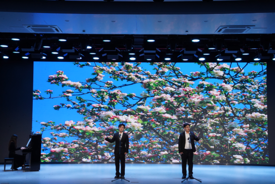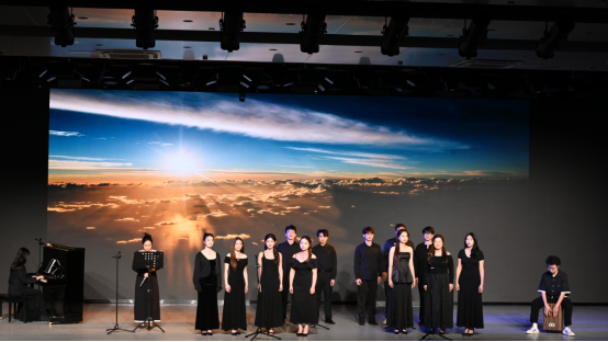 音乐会在男女二重唱《同簪》中拉开帷幕,清澈的嗓音与细腻的情感表达,瞬间将观众带入闺中图景,传递了“天涯纵远长同簪”的真挚情谊。古筝与钢琴的奇妙邂逅《末代传奇》,将中国传统乐器与西方古典乐器完美融合,创造出别具一格的听觉体验。女声小合唱《我只在乎你》以温暖和谐的和声,唤起了观众心中的经典记忆。小提琴与钢琴协奏曲《下雨的时候》如细雨般轻柔细腻,两位演奏者通过乐器对话,营造出雨中漫步的诗意画面,展现扎实的专业功底和艺术表现力。合唱《我乘着风飞过来》以轻快活泼的节奏,表达了同学们即将展翅高飞的心情,这份勇往直前的力量,也带领现场观众开启了奔赴星辰大海的音乐之旅!男声二重唱《汉宫春·立春日》将传统诗词文化与现代作曲艺术完美结合,用歌声描绘出一幅春日宫廷画卷。音乐剧片段《后妈茶话会》则以诙谐幽默的表演风格赢得了观众阵阵掌声和笑声。男声二重唱《天边外》以其磅礴的气势和深情的演绎,描绘男主“沙”从寻爱未果的遗憾心境到重拾信心的心态转变,歌声中饱含的力量与希望。原创舞台音乐剧《青春在歌唱》将现场气氛推向了一个小高潮。学堂里的理想呐喊、战火中的家国坚守、改革中的敢闯热忱到新时代的追梦初心!男声二重唱《白云故乡》以悠扬的旋律和深情的演唱感染了现场观众,这首抗战时期广为流传的音乐作品将个人思乡之情与国仇家恨融为一体,表演者用音乐传递情感,引起了观众的共鸣。合唱《凤凰花开的路口》向观众回顾了大学四年一幅幅温馨的画面,恰似他们青春里那段最灿烂、最滚烫的年华人生的旅途。他们的演唱道出了毕业季的依依惜别之情,也让许多在场师生热泪盈眶。女声二重唱《爱莲说》融合古典文学意蕴与民族音乐韵味,诠释了中国传统文化中莲花清雅形态和“出淤泥而不染”的高洁品格。音乐会在合唱《像你这样的朋友》中落下帷幕,这首充满青春气息的歌曲,以温暖旋律串联四年同窗情谊,歌声里藏着并肩逐梦的时光、互相扶持的感动。愿此去弦歌相伴,情谊岁岁常安不散场。