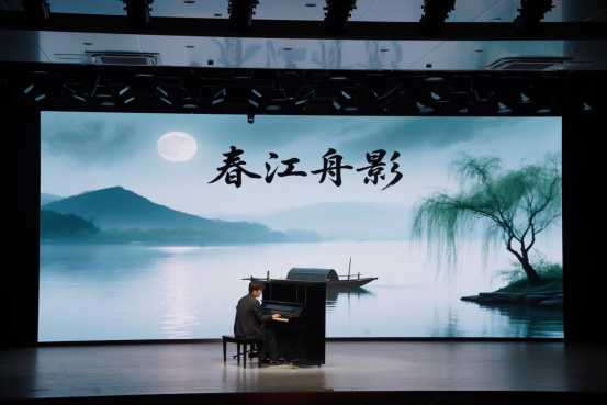 音乐会在张晓哲演绎的《松花江上》中拉开序幕。这首由崔世光改编的经典作品,以深沉低回的旋律诉说着故土情怀。紧接着,蔡梓仁带来萧泰然的《望春风》,轻快灵动的节奏搭配温润柔和的音色,如春风拂面般勾勒出少女怀春的细腻情愫。温海燕演奏的《彩云追月》是王建中的经典改编之作,音符如繁星点点洒落,勾勒出月夜下彩云流转的唯美意境,随后,周漪以一曲《绣金匾》接力登台,同样出自王建中之手的这首作品。蓝尹婷演绎的《新疆幻想曲》节奏明快、风情浓郁,邓尔博的创作中融入了新疆民族音乐的独特韵律,黄晓莹弹奏的《水草舞》出自吴祖强与杜鸣心之手,灵动的音符如水中水草随波摇曳,画面感十足,尽显音乐的灵动与诗意;陈安琪演绎的《红色娘子军》组曲选段《军民一家亲》;邓羽殷与吴泳梅先后带来张帅《前奏曲》中的第一首与第三首,两首作品风格各异却同样饱含深意,前者沉稳内敛,后者奔放洒脱;贺洁欣带来张朝的《我的祖国》,深情款款的琴音中满是对祖国山河的热爱与赞颂。音乐会在张晓哲演绎的《春江舟影》中落下帷幕,储望华的这首作品如一幅写意山水画,琴音流转间,春江月夜、孤舟泛波的意境徐徐展开,余韵悠长。